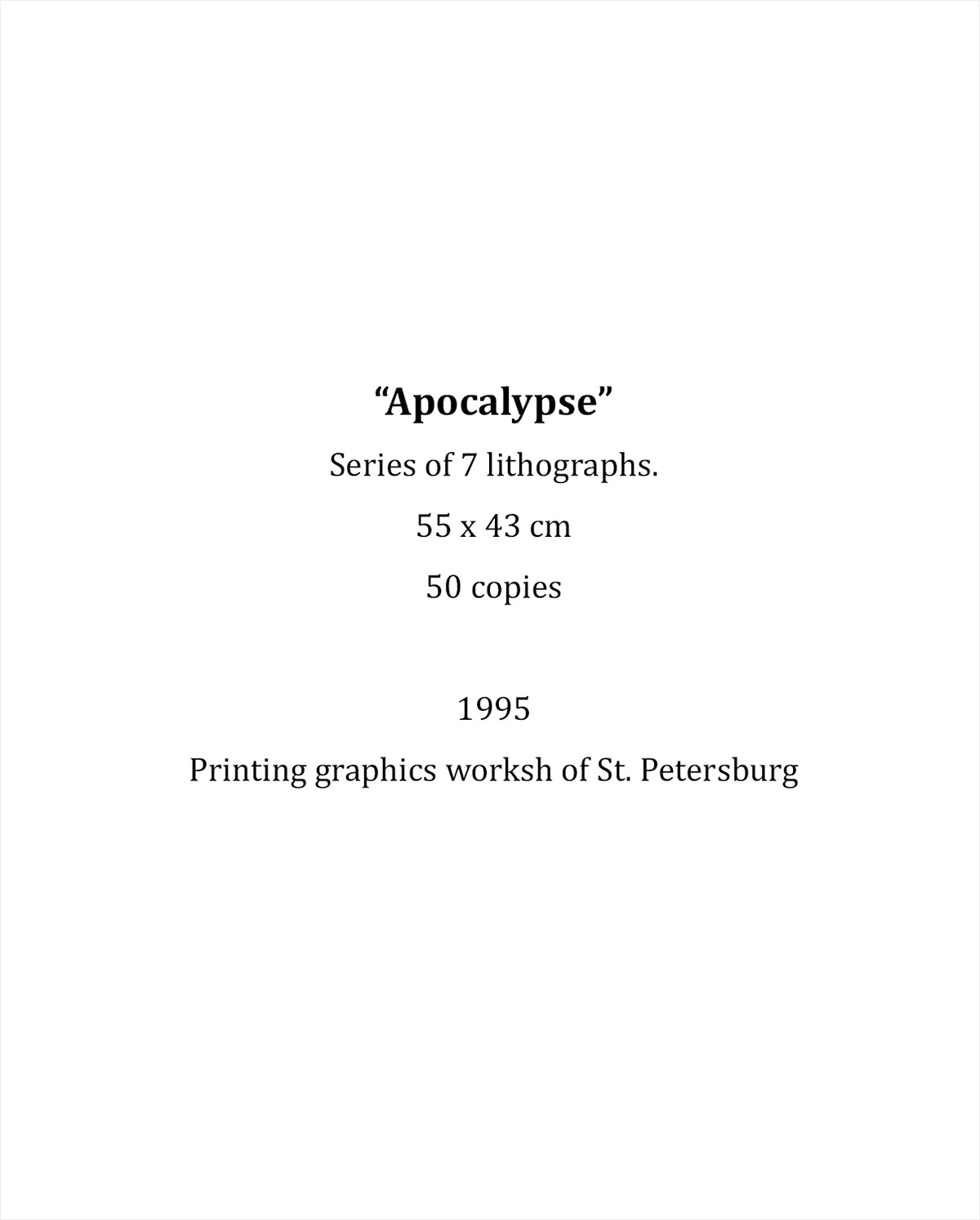 Apocalypse series of 7 lithographs / 1994
