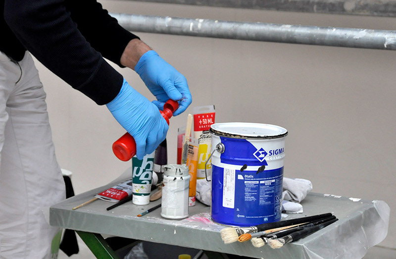Projet de fresque murale pour la mairie d’Étiolles, dans l’Essonne, 55 m². J’ai élaboré plusieurs versions et esquisses avant que le projet final ne soit validé par la mairie et les Bâtiments de France.
